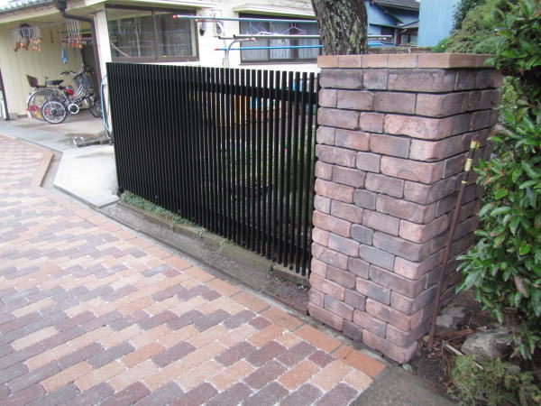 ![]() 既存の門柱・門扉は堅固であったので再利用します |